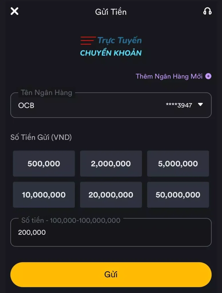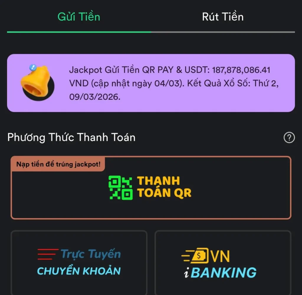 Sau khi điền đầy đủ thông tin ngân hàng, người chơi sẽ bắt đầu quá trình gửi tiền vào tài khoản cược V9BET của mình. Hiện nay có rất nhiều phương thức giao dịch V9BET được sử dụng như: Ví điện tử (zalo pay, momo), ATM,… Trong đó, phương thức chuyển khoản ngân hàng hay thanh toán qua mã QR được nhiều người yêu thích nhất.