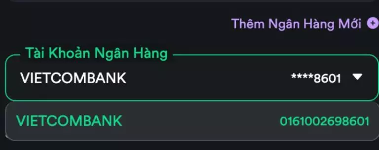 Chọn tài khoản ngân hàng để nhận tiền