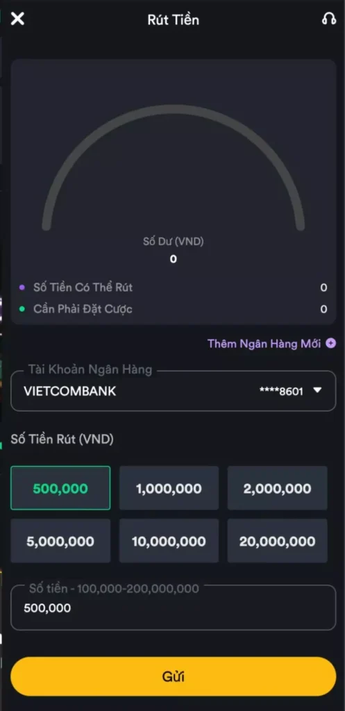 Số tiền muốn rút: Số dư trong tài khoản cược phải đáp ứng đủ số tiền này.